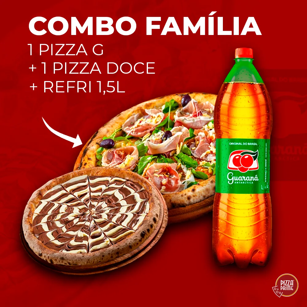 Combo Família - 1 Pizza G 8 fatias (35cm) + 1 Primezita (20cm) Doce + 1 Refri 1,5L